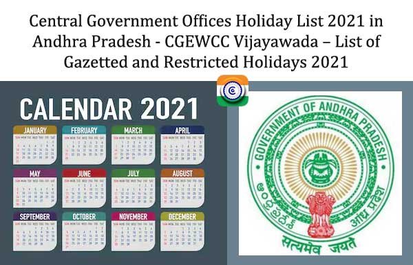 Central Government Offices Holiday List 2021 in Andhra Pradesh - CGEWCC Vijayawada – List of Gazetted and Restricted Holidays 2021
