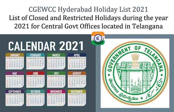CGEWCC Hyderabad – List of Closed and Restricted Holidays during the year 2021 for Central Government Offices located in Telangana.