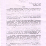 NFPE Union derecognized with immediate effect - Directorate Order dtd 26/04/2023 SR-10/7/2022 -SR-DOP Government of India Ministry of Communications Department of Posts (SR Section) By Registered Post Dak Bhawan, Sansad Marg, New Delhi-110001 Dated: 26/04/2023 ORDER Whereas allegations of funding Political Party were leveled against … [Read more...] about NFPE DERECOGNIZED WITH IMMEDIATE EFFECT – Allegations of funding to Farmer’s agitation Kisan Movement